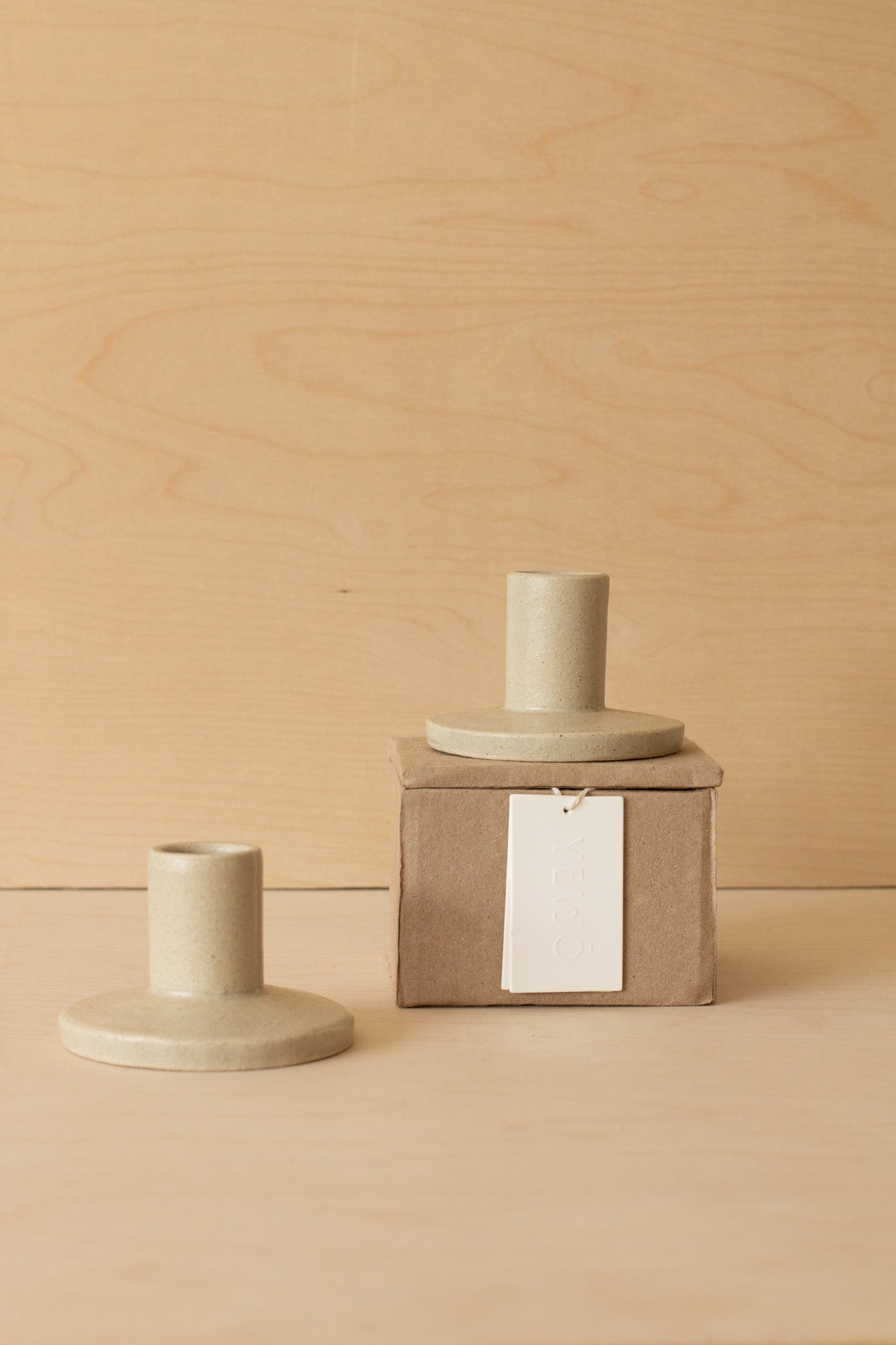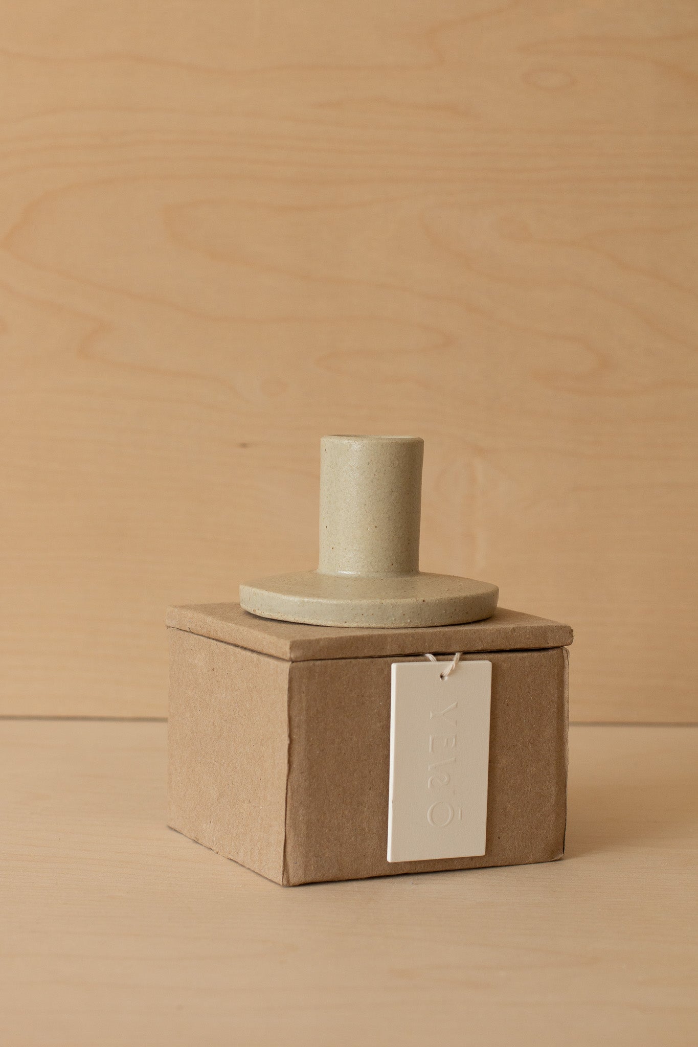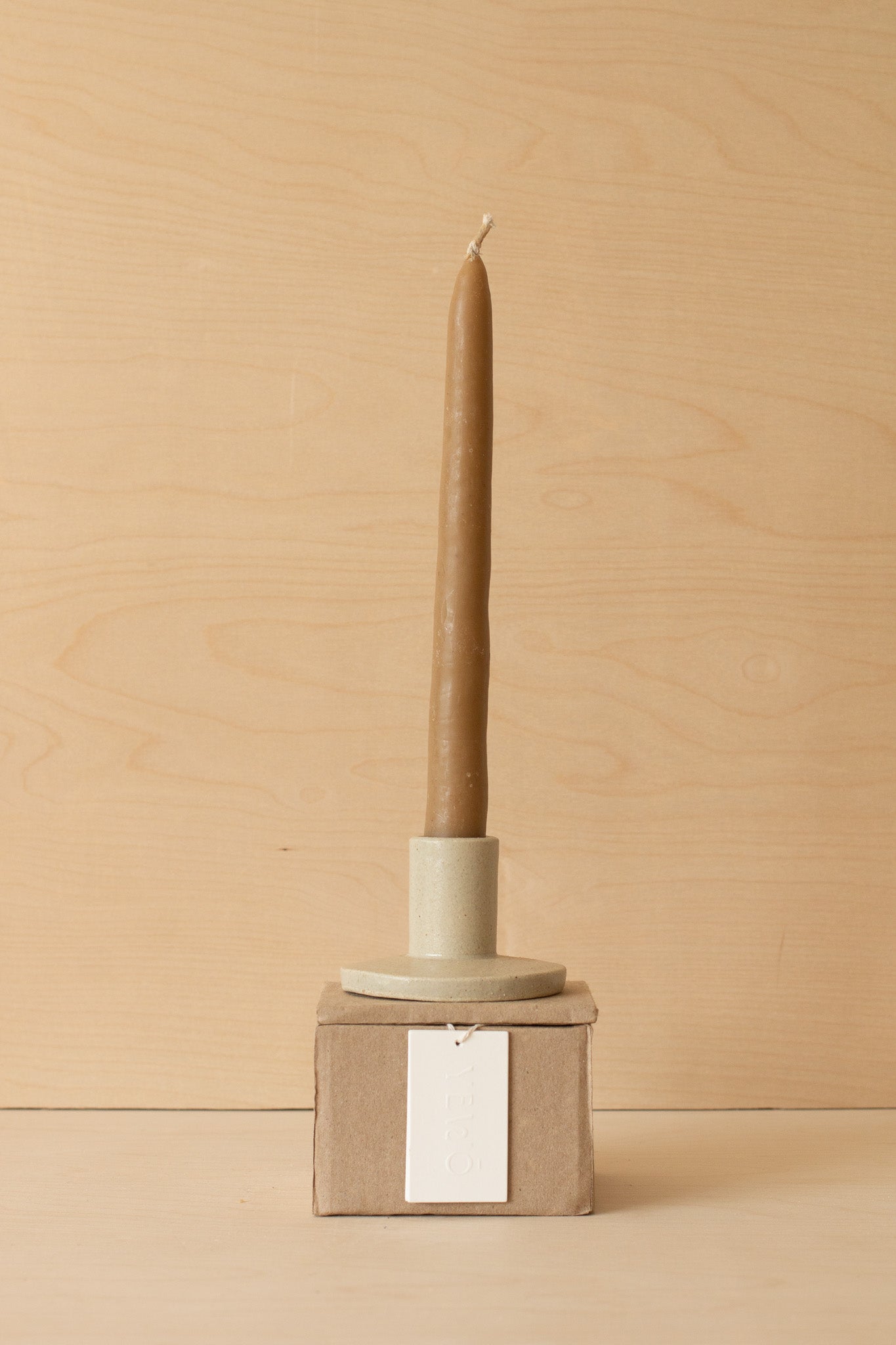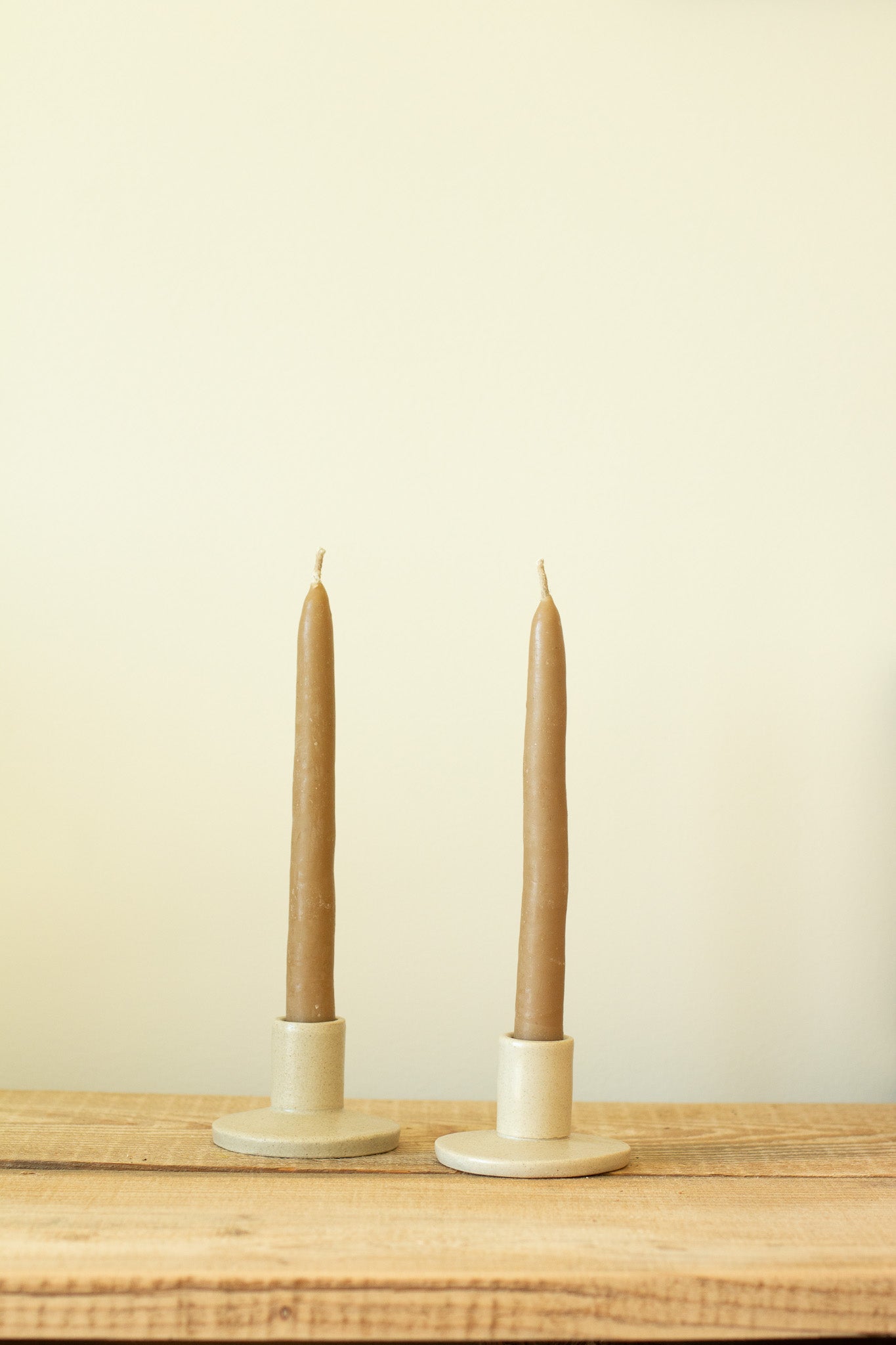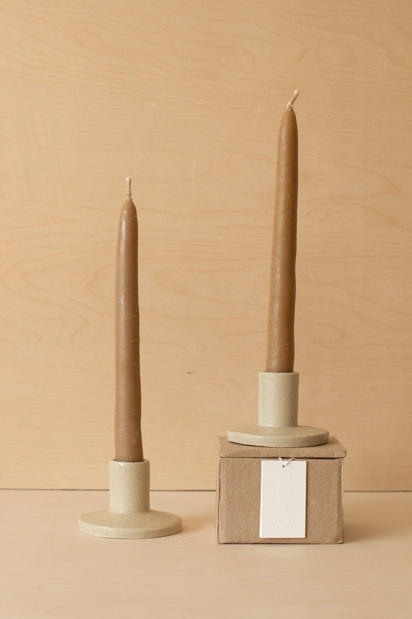Candle Holder features an organic speckled matte earthen finish. Sold individually, each piece is uniquely handcrafted by our partners Dedza Pottery in central Malawi. Sized for standard tapered candles, complement the look with our tapered Beeswax Candles.