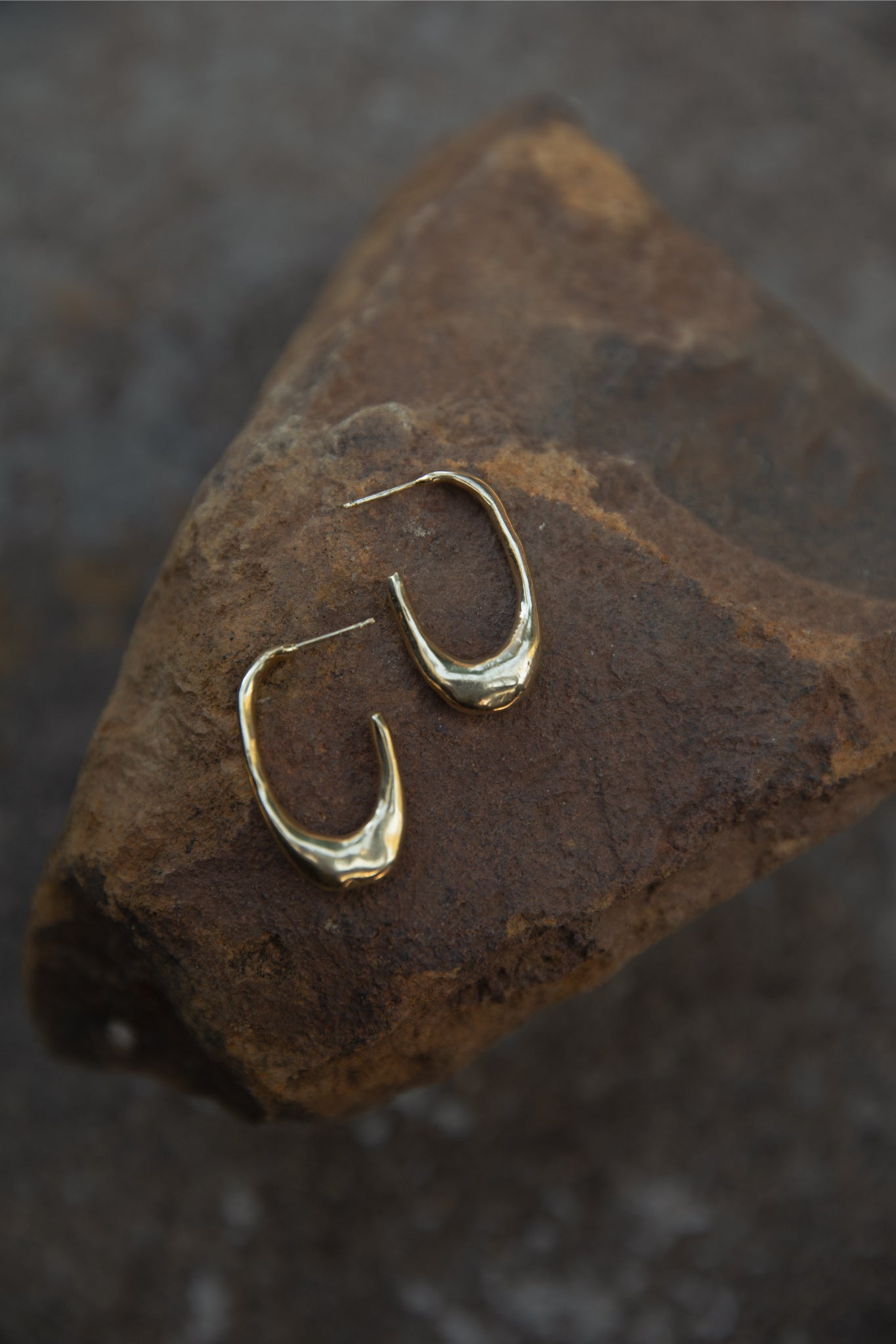 Inspired by the movement of Lake Malawi, the Aurora Hoops embody the power of water through smooth, naturally imperfect curves. Grounded at the bottom, they form a sculptural yet striking everyday hoop.