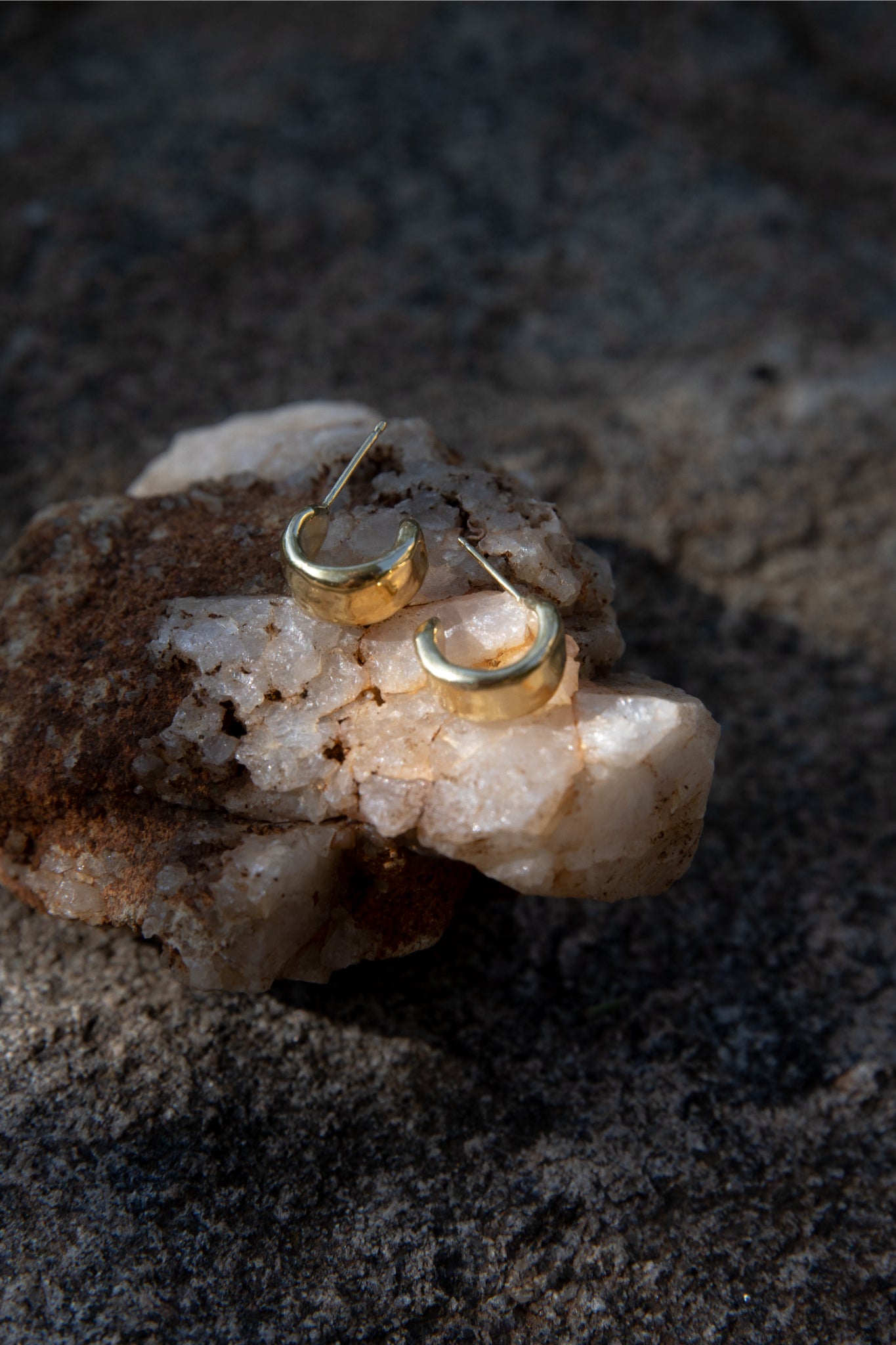 Organic, thick hoops that hug the earlobe perfectly — simple, sculptural, and designed for everyday wear.